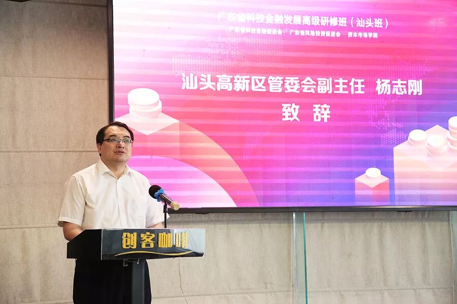 汕头高新区管委会副主任杨志刚在开班仪式上致辞,就新形势下举办科技金融发展高级研修班的积极意义、高新区近期出台的科技金融有关扶持政策进行宣讲,鼓励资本市场和科技企业加强互动、融合发展。